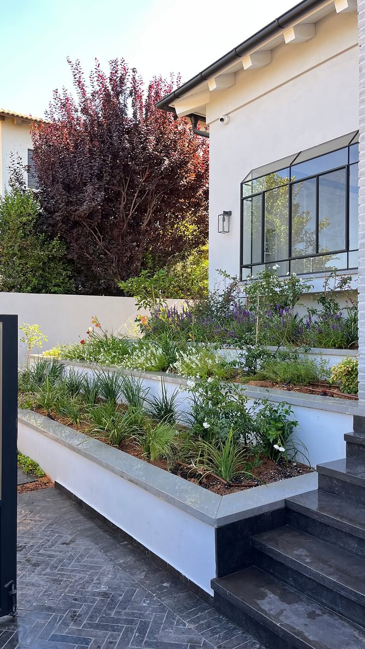 אם אתם מחפשים רעיונות לגינה ביתית שמרגישה כמו חופשה באירופה, זה הסגנון שלכם. כאן נמצא הרבה אבני מדרך טבעיות, עצי זית, ותבלינים כמו לבנדר ורוזמרין שמפיצים ריח משכר.